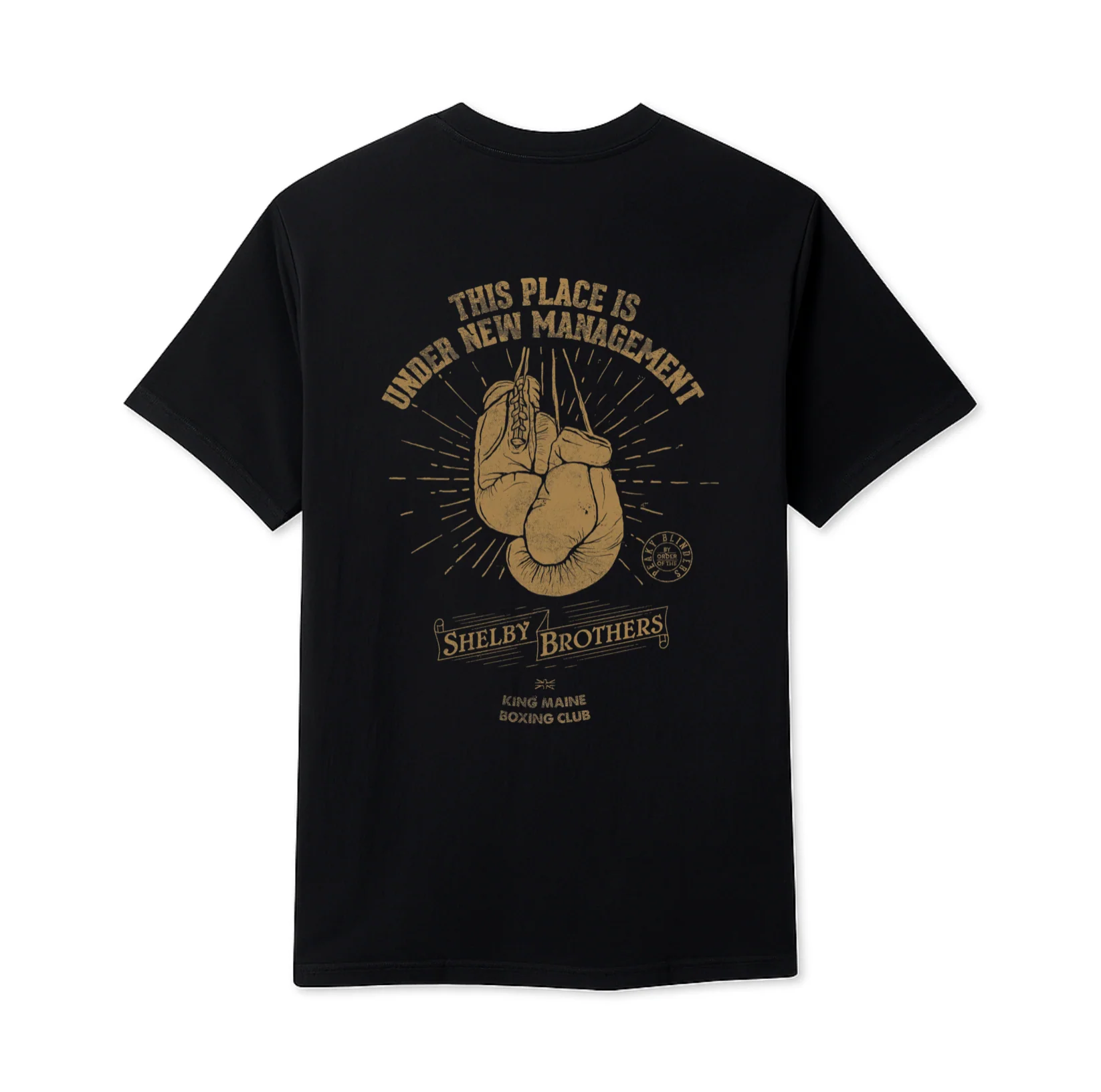 The official Peaky Blinders âBoxing Club â Under New Managementâ T-shirt from Birmingham Wear stands out with its signature premium print that draws attention. Made from plain cotton, this piece offers a comfortable, timeless fit â perfect for any Peaky Blinders enthusiast.